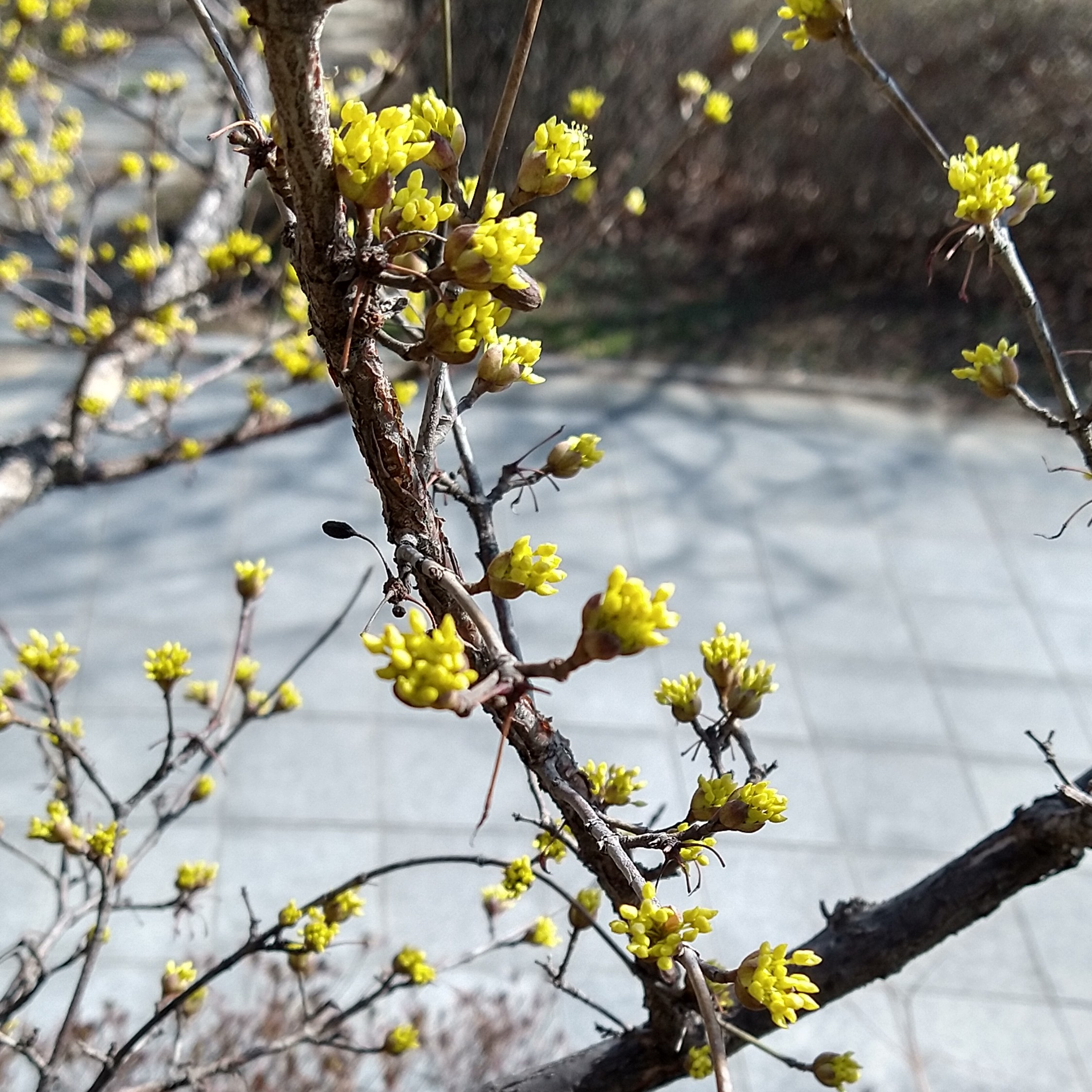 20-58 점심시간 산책 산수유 망울이 터졌다. 화알짝~ 봄은 이미 요앞에...