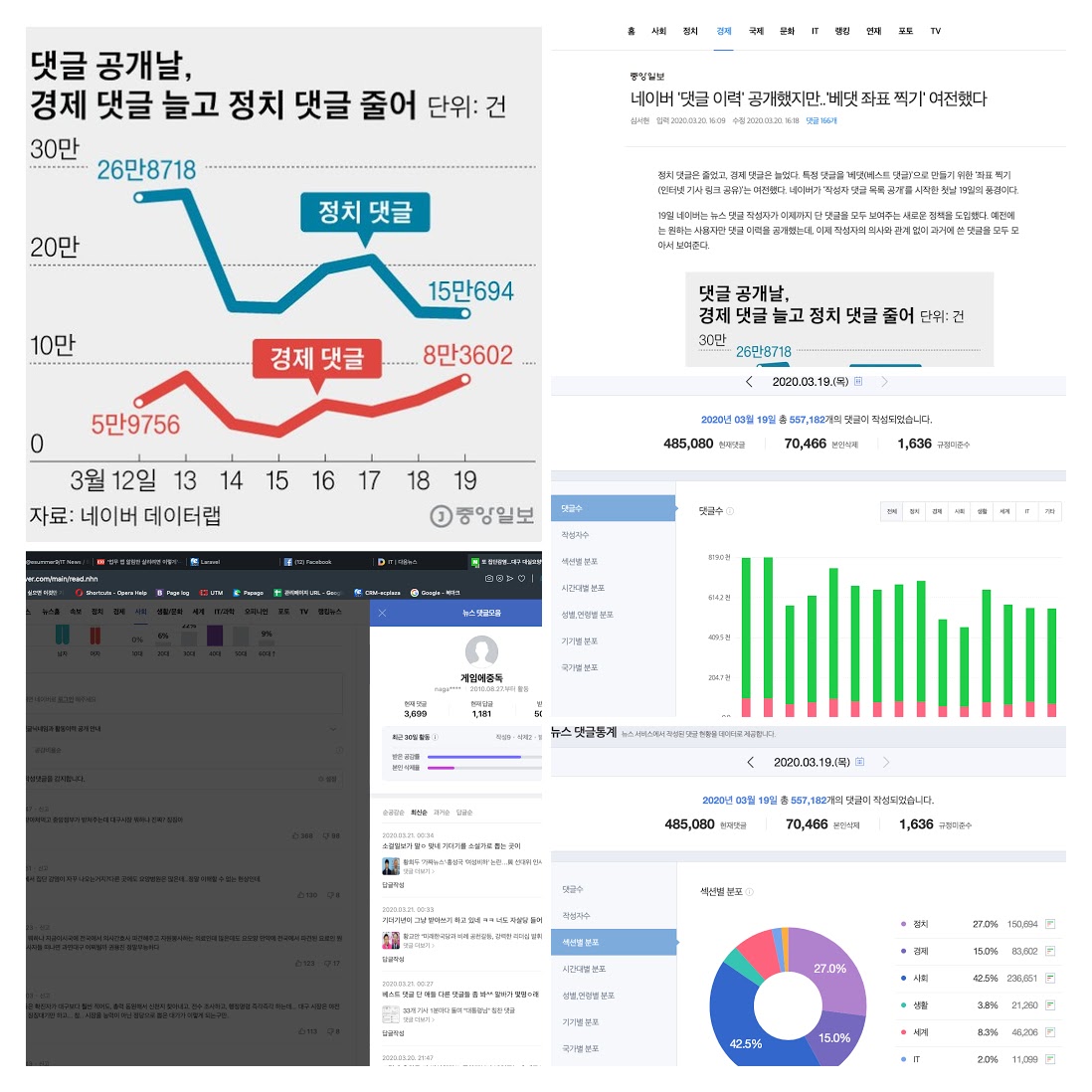 경제분야 댓글은 늘었고 정치분야 댓글은 줄었다고 한다
