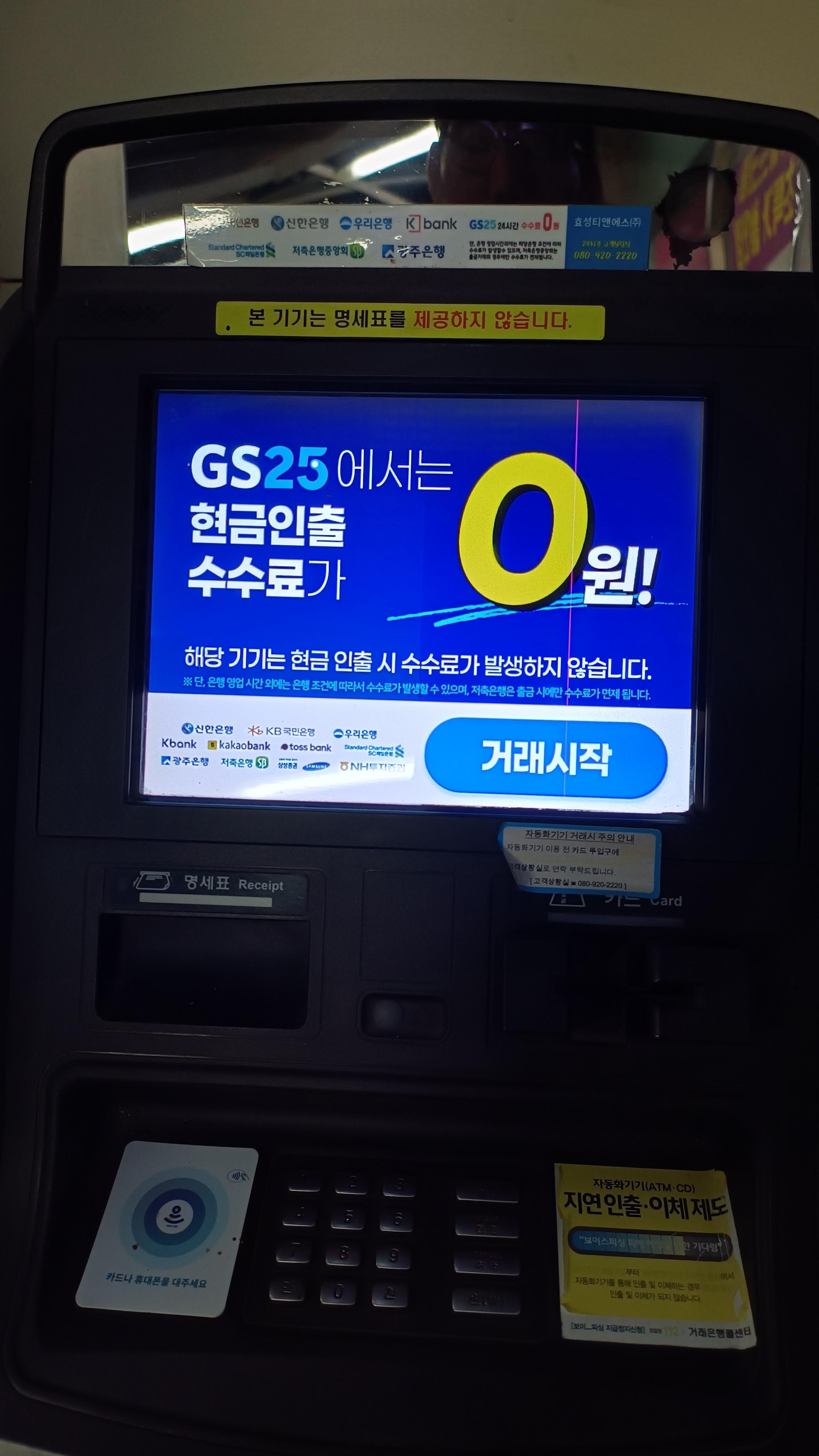 GS25에서는 현금인출 수수료가 0원 이라고 한다.
